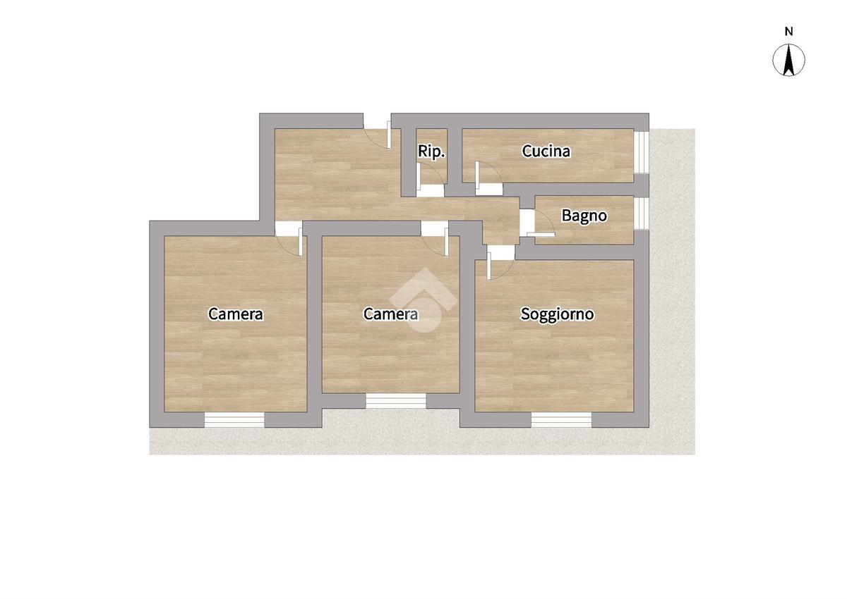 La composizione interna data da: un ingresso, un soggiorno, una cucina abitabile, due camere da letto, un bagno finestrato ed un ampio balcone. Riscaldamento centralizzato con termovalvole. Esposizione Nord / Est.